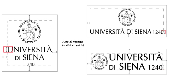 - occorre mantenere sempre intorno al logo uno spazio bianco ("area di rispetto") equivalente: all'altezza della U nel logo a sviluppo verticale, all'altezza dello 0 nei loghi a sviluppo orizzontale e a sviluppo esteso