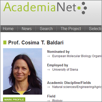 La professoressa Cosima Baldari, direttore del dipartimento di Scienze della vita dell’Università di Siena, è stata accolta come membro di AcademiaNet, la rete internazionale per la promozione delle donne negli ambienti accademici e scientifici.