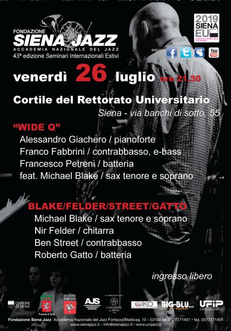 In occasione della 43esima edizione dei Seminari internazionali estivi di Siena Jazz si terranno presso il cortile del rettorato 2 delle principali sessioni della rassegna estiva. Le 2 sessioni del concerto in programma si terranno il 26 luglio, con inizio alle 21.30.