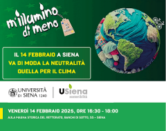L’Università di Siena il 14 febbraio aderisce a M’Illumino di Meno con un evento pomeridiano al Palazzo del Rettorato.