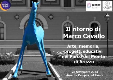 L’evento, organizzato in occasione di Bright Night 2023 sul tema “EsserE Umani” e in continuità con le attività del progetto di ricerca biennale GEM, intende mettere l’accento sul significato e sulle potenzialità educative dell’arte di forte impatto comunicativo che utilizza e preserva il naturale supporto dell’ambiente e delle architetture sotto lo sguardo di Marco Cavallo, simbolo della rivoluzione basagliana che verrà rievocato nei luoghi del Pionta nella ricorrenza del suo primo viaggio di 44 anni fa, in cui annunciava la chiusura definitiva dell’Ospedale Psichiatrico e l’apertura del Parco alla città di Arezzo.