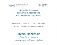 si svolgerà il seminario “Bitcoin Blockchain. Filosofia economica e tecnologia dell’asset digitale”