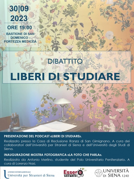 Le attività di Bright-Night, la Notte delle Ricercatrici e dei Ricercatori organizzata dall’Università di Siena proseguono il 30 settembre. Sarà proposto a Siena, alla Fortezza Medicea, alle ore 19, l’incontro “Liberi di Studiare”, a cui parteciperanno fra gli altri il Rettore dell’Ateneo Roberto Di Pietra, le professoresse Chiara Mocenni dell’Università di Siena e Antonella Benucci dell’Università per Stranieri di Siena; durante l’incontro verrà presentato il podcast omonimo, realizzato presso la Casa di Reclusione di San Gimignano, da alcuni collaboratori dei due Atenei.