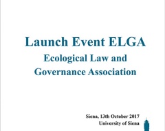 Il 13 ottobre, alle ore 9.00, presso il Santa Chiara Lab, si terrà il convegno "Launch Event ELGA - Ecological Law and Governance Association", aperto dai saluti di benvenuto di Francesco Frati, rettore dell'Università di Siena, e di Bruno valentini, sindaco di Siena.