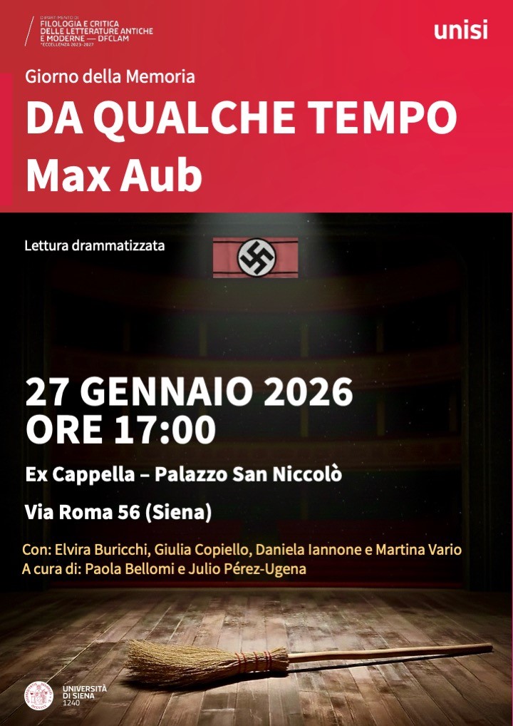In occasione del Giorno della Memoria, il Dipartimento di Filologia e Critica delle Letterature Antiche e Moderne (Università di Siena) ospita una lettura drammatizzata del testo teatrale "Da qualche tempo" ("De algún tiempo a esta parte") di Max Aub.