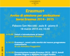 Il 18 marzo, alle ore 10.00, presso il Palazzo San Niccolò, si terrà la presentazione di "Erasmus+: avviso di selezione per attribuzione borse Erasmus 2014 - 2015".