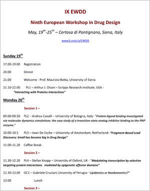 Il 19 maggio, presso la Certosa di Pontignano, si aprirà la nona edizione dell'European Workshop in Drug Design, organizzato dal dipartimento di Biotecnologie, chimica e farmacia.