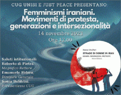L'evento dal titolo: "Femminismi iraniani. Movimenti di protesta, generazioni e intersezionalità", nasce da una comune azione del CUG e dello Sportello avanzato Just Peace; si colloca all'interno di uno dei momenti che Unisi sta organizzando in occasione dell'approssimarsi del 25 novembre - Giornata internazionale per l'eliminazione della violenza contro le donne - e rientra nel Cartellone di eventi predisposto dal Comune e dalla Provincia.