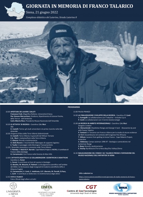 Un'intera giornata con interventi e testimonianze di amici e collaboratori sui tanti percorsi intrapresi da Franco e dalla sua continua produzione di nuove idee e traguardi da raggiungere: la ricerca sul campo in Antartide, sulle Alpi ed in altre aree del pianeta, gli approcci con le scuole, i nuovi obiettivi per i corsi di laurea e la loro internazionalizzazione e gli interessi tecnologico-applicativi.