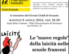 L'8 aprile, alle ore 16.30, presso l'Aula delle Colonne del Polo Universitario di Grosseto, si terrà l'incontro Le "nuove regole" della laicità nelle scuole francesi, organizzato dal circolo grossetano dell'Unione degli Atei e degli Agnostici Razionalisti (Uaar).