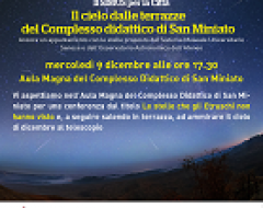 Mercoledì 9 dicembre alle ore 17.30 presso il polo didattico di San Miniato (via Aldo Moro 2 a Siena), si terrà una conferenza dal titolo “Le stelle che gli Etruschi non hanno visto” e poi, a seguire, dal terrazzo del plazzo sarà possibile ammirare il cielo di dicembre al telescopio.