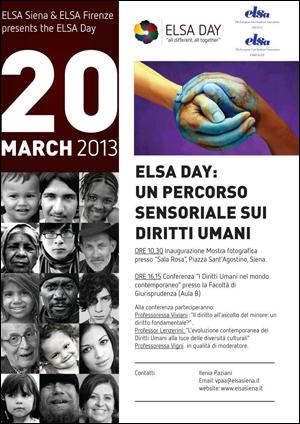 In occasione della giornata "Elsa day for human right", il 20 marzo, alle ore 10.30, la Sala Rosa ospiterà l'inaugurazione della mostra fotografica "Elsa day. All different. All together", un percorso sensoriale sul tema dei diritti umani nel mondo contemporaneo.