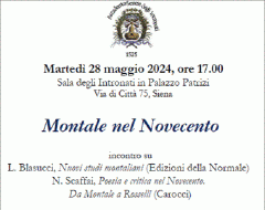 Il 28 maggio l’Accademia Senese degli Intronati organizza, in collaborazione con il Dipartimento di Filologia e critica delle Letterature antiche e moderne di Siena, un incontro dedicato a Eugenio Montale, oggetto di numerosi studi e oggi al centro di un importante lavoro di ricerca a cui collaborano più atenei italiani coordinati da Niccolò Scaffai, professore dell’Università di Siena e tra i maggiori esperti di Montale; si tratta del progetto “Lettere in rete”, finanziato dal Ministero della Cultura, in cui ricercatrici e ricercatori stanno lavorando sui numerosi epistolari montaliani per ricostruire la complessa e stratificata rete di relazioni del poeta e contribuire a comprendere meglio la sua officina di scrittura.