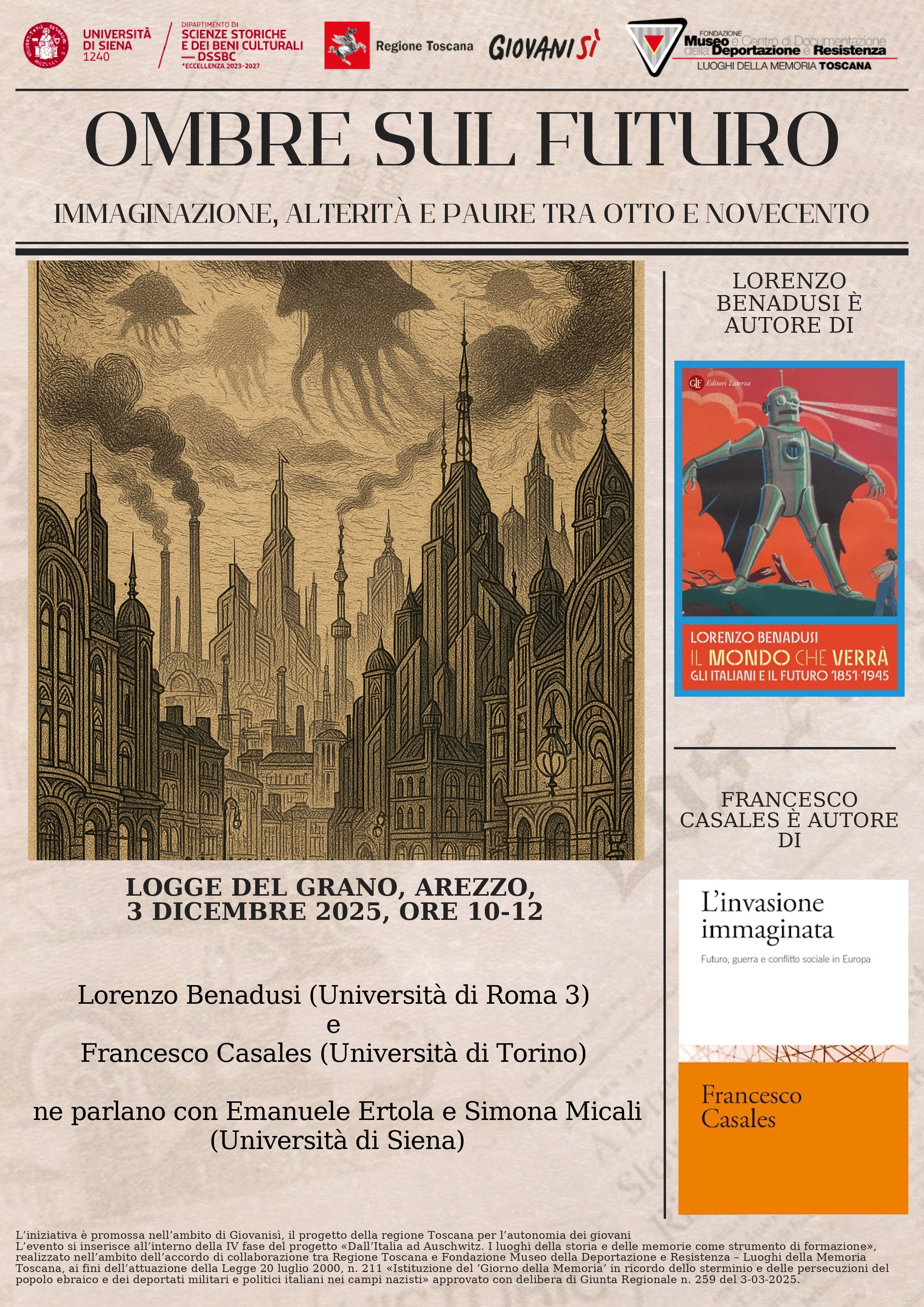 All’interno di questa cornice, Emanuele Ertola (docente di Storia contemporanea) e Simona Micali (docente di Letterature comparate) presenteranno due recenti libri di Lorenzo Benadusi (Università di Roma Tre) e Francesco Casales (Università di Torino) e dialogheranno con gli autori. Sarà l’occasione per discutere come la letteratura di fantascienza tra Otto e Novecento sia stata lo specchio delle paure della società italiana: futuri incerti in cui l’Altro e l’invasione vengono immaginati come minacce incombenti.