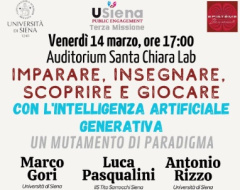 Il 14 marzo, alle ore 17, nell’Auditorium del Santa Chiara Lab (via Valdimontone, 1 – Siena), si terrà l’incontro “Imparare, insegnare, scoprire e giocare con l’intelligenza artificiale”.