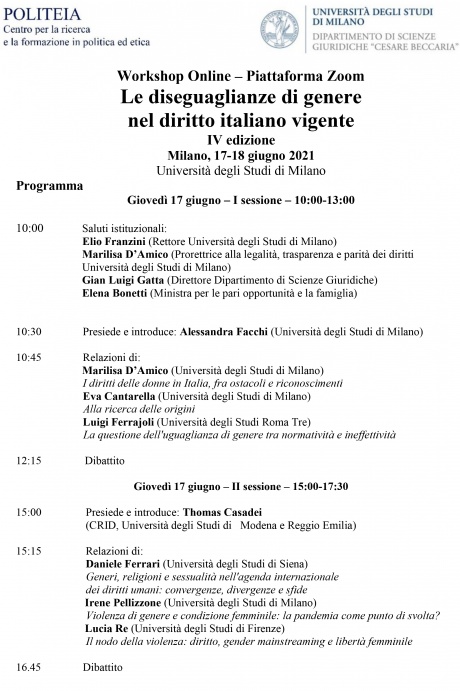Il seminario si svolgerà sulla piattaforma ZOOM al link che verrà comunicatoagli iscritti dal 16 giugno 2021.
