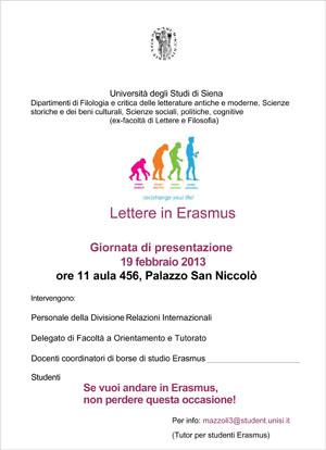 Lettere in Erasmus: giornata di presentazione
