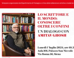 Il 1° luglio, alle ore 10.30, in occasione del conferimento della laurea magistrale ad honorem in Lettere moderne, che si terrà il prossimo 4 luglio, lo scrittore Amitav Ghosh incontra la comunità accademica di Siena in aula 101 del Complesso didattico San Niccolò.