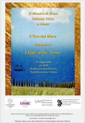 Il 16 maggio, alle ore 16.00, presso l'auditorium Santa Chiara, si terrà l'incontro "L'oro del mare incontra i figli della Terra", a cui interverrà il maestro di bisso Chiara Vigo, che farà dono all’Ateneo e alla città di Siena di una sua opere ricamata in bisso che riproduce Santa Caterina in trono.
