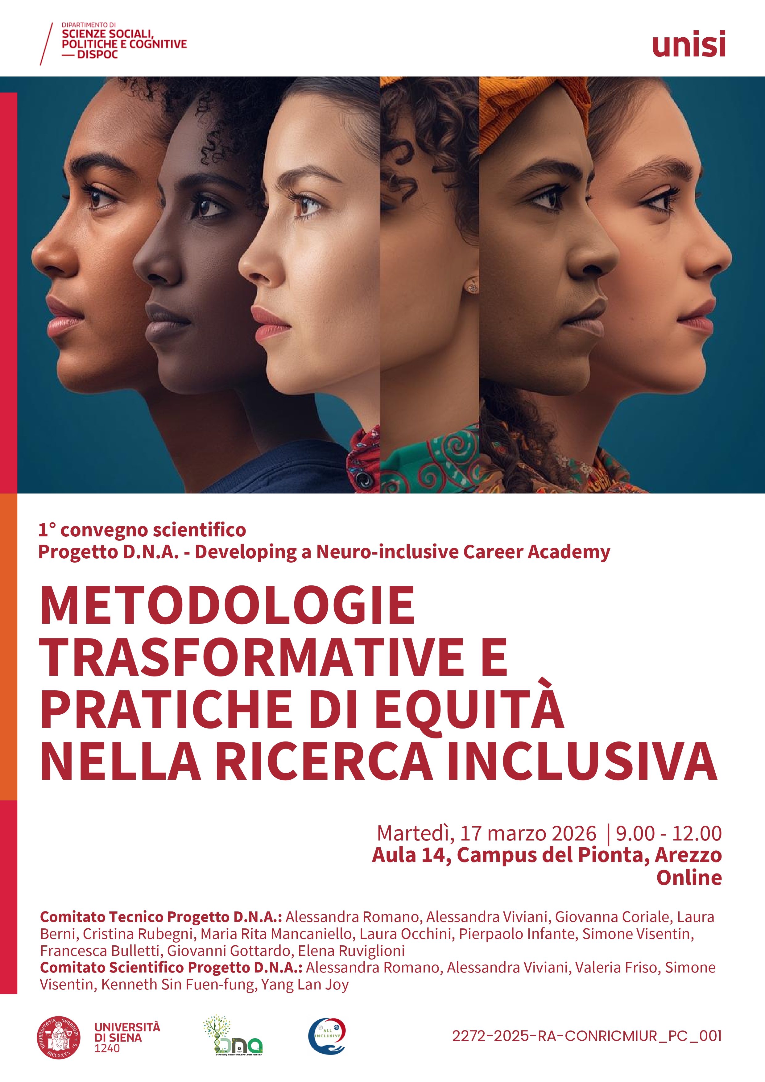 Il seminario si aprirà con i saluti istituzionali del prof. Francesco Marangoni, Direttore del Dipartimento di Scienze Sociali, Politiche e Cognitive dell'Università di Siena. Seguiranno le prof.sse Alessandra Romano, Delegata del Rettore alle Politiche di Inclusione ed Equità, e Loretta Fabbri, Delegata del Rettore al TLC.