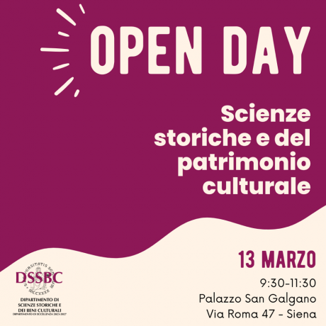 Il 13 marzo dalle ore 9.30 nella corte di Palazzo San Galgano si terrà l'Open Day del Dipartimento di Scienze storiche e dei beni culturali.