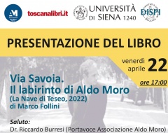 Il 22 aprile, alle ore 17, nella Sala Conferenze del Complesso didattico Mattioli, si terrà la presentazione del libro di Marco Follini "Via Savoia. Il labirinto di Aldo Moro" (La Nave di Teseo, 2022).
