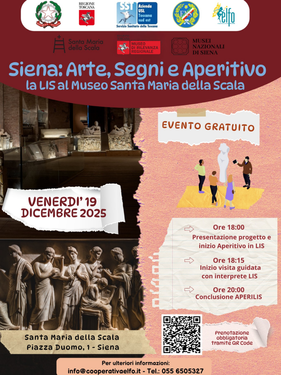 Il 19 dicembre, dalle 18 alle 20, al Complesso museale Santa Maria della Scala (piazza Duomo, 1 – Siena) si terrà “AperiLIS al Museo!”, un appuntamento dedicato all’inclusione e alla scoperta della Lingua dei Segni Italiana.