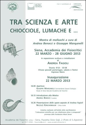 Lo scopo della mostra è avvicinare il visitatore ai molluschi in un percorso tra scienza e arte: in esposizione conchiglie appartenenti a collezioni del MuSNAF, ma anche le originali installazioni dello scultore senese Andrea Fagioli.
