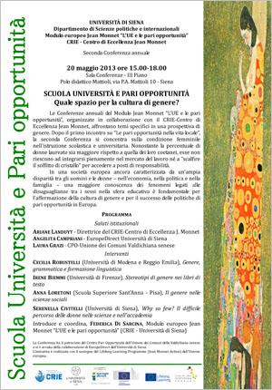 La conferenza ha il patrocinio del Centro Pari Opportunità dell'Unione dei comuni della Valdichiana senese e si è avvalsa della collaborazione del centro Europe Direct dell'Ateneo senese.