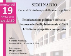 Seminario “Polarizzazione politica e affettiva: democrazie facili, democrazie difficili. L’Italia in prospettiva comparata”