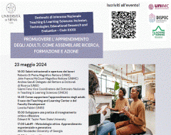 Nei giorni 23 e 24 maggio si svolgerà il seminario promosso dal Dottorato di Interesse Nazionale Teaching & Learning Sciences: Inclusion,Technologies, Educational Research and Evaluation - Ciclo XXXIX dal titolo “ Promuovere l’apprendimento degli adulti. Come assemblare ricerca, formazione e azione”