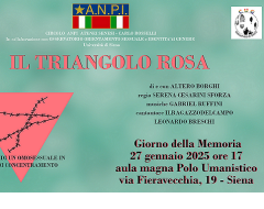 Il giorno 27 gennaio - Giorno della memoria – si terrà un incontro/spettacolo con Altero Borghi, sul tema della deportazione degli omosessuali dal titolo “Il triangolo rosa.”