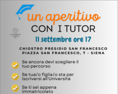 L'11 settembre, a partire dalle ore 17, nel Chiostro del Presidio di San Francesco si svolgerà l'iniziativa Un aperitivo con i tutor. L'evento è dedicato a tutti coloro che sono in procinto di scegliere il proprio percorso di studi universitari, sia triennale che magistrale e anche quante/i desiderino entrare in contatto con le studentesse e gli studenti tutor dell'Ateneo. La partecipazione è gratuita e non occorre prenotazione.