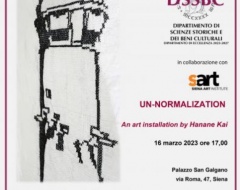Il 16 marzo, alle ore 17, nel cortile di Palazzo San Galgano, si terrà l’inaugurazione di "UN-normalization", installazione dell'artista libanese Hanane Kai dedicata al tema del controllo negli odierni territori palestinesi occupati.