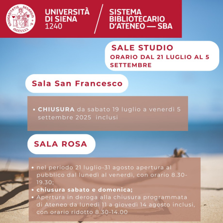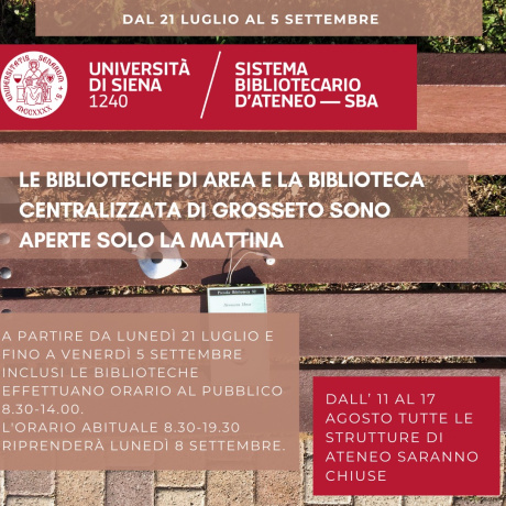 - Le strutture universitarie dell’Ateneo, comprese le sedi di Arezzo, Grosseto e San Giovanni Valdarno, saranno chiuse dall’11 al 17 agosto.